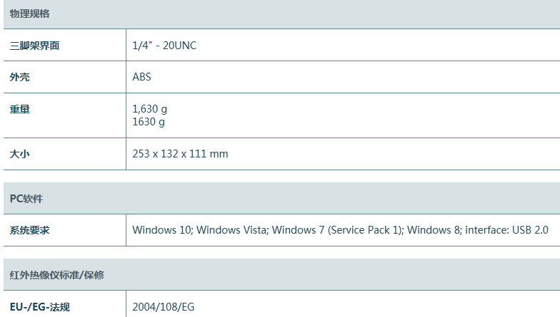 紅外分辨率 640 × 480 像素;采用SuperResolution紅外超像素技術(shù)后,可提升至 1280 × 960 像素;熱靈敏度< 40 mK