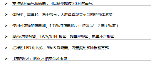 | 支持傳感器 | 超過30種可以即插即用的智能傳感器,包括射線、ppb和ppm的PID傳感器、電化學毒氣傳感器和氧氣、催化燃燒傳感器和紅外可燃氣、CO2紅外傳感器 |