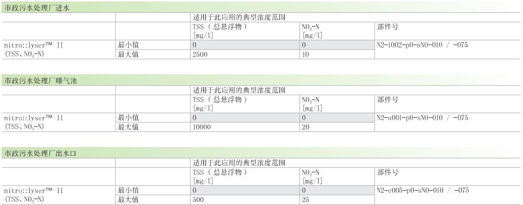 應用范圍從以μg/l為單位的(超)純水到以g/l為單位的工業污水。硝酸鹽濃度與其它的物質群(例如有機碳或總顆粒)無交叉敏感度。測量參數有硝酸鹽和濁度/顆粒物含量。