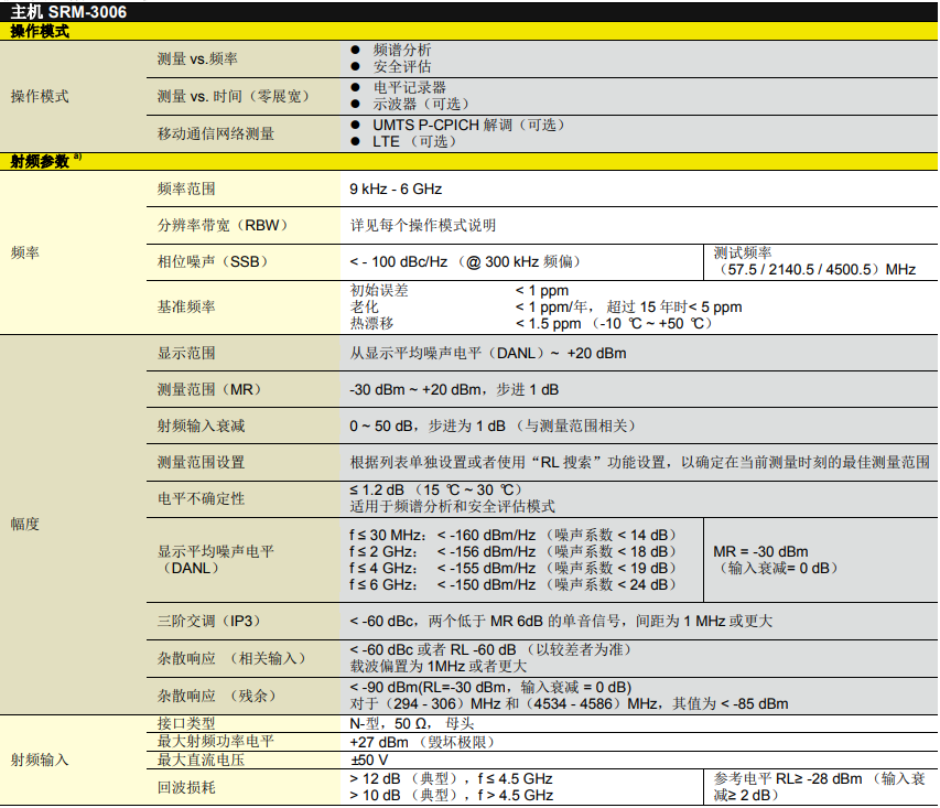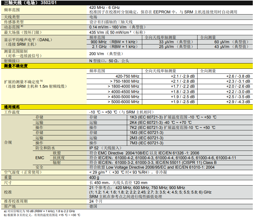 德國Narda SRM3006選頻電磁輻射分析儀產品技術規(guī)格:?