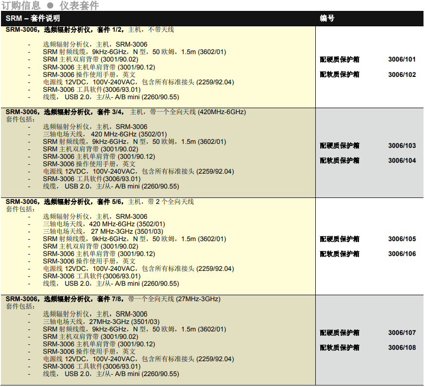 儀器附帶的PC 軟件,“SRM-3006 Tools”可編輯表格,該表格可以增添其他廠家提供的天線和線纜校準參數(shù)、自定義標準的評估曲線。