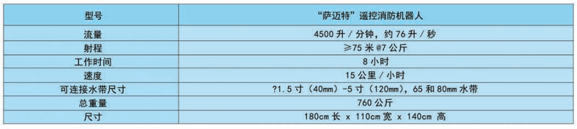 美國 “薩邁特”遙控消防機器人 相關參數(shù):
