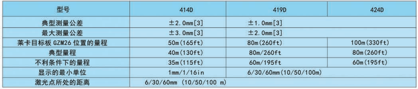 美國Fluke 激光測距儀414D/419D/424D 相關參數: