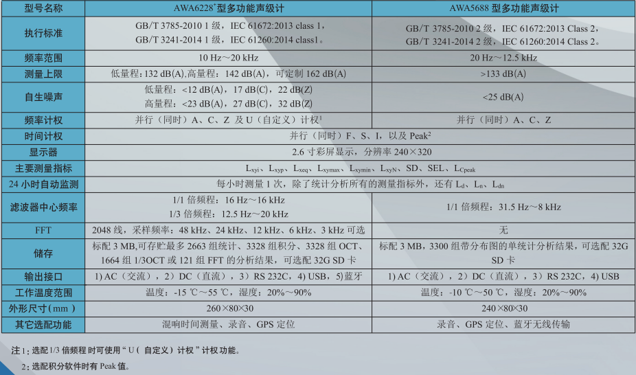 杭州愛華 AWA6228+/AWA5688型多功能聲級計 相關參數: