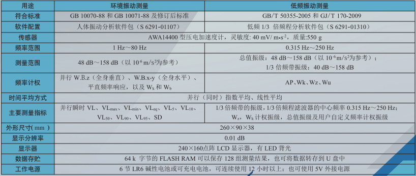 杭州愛華 AWA6256B+型環境振動分析儀 相關參數: