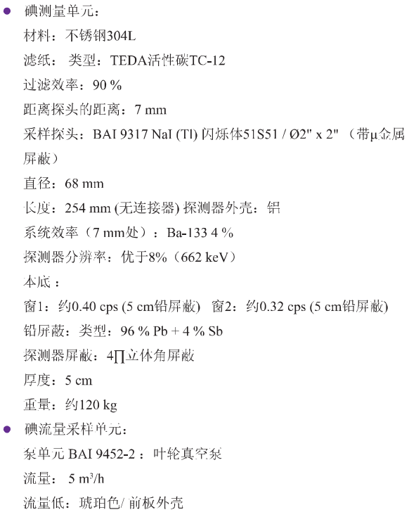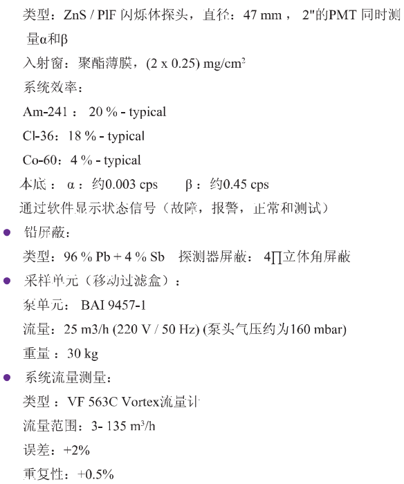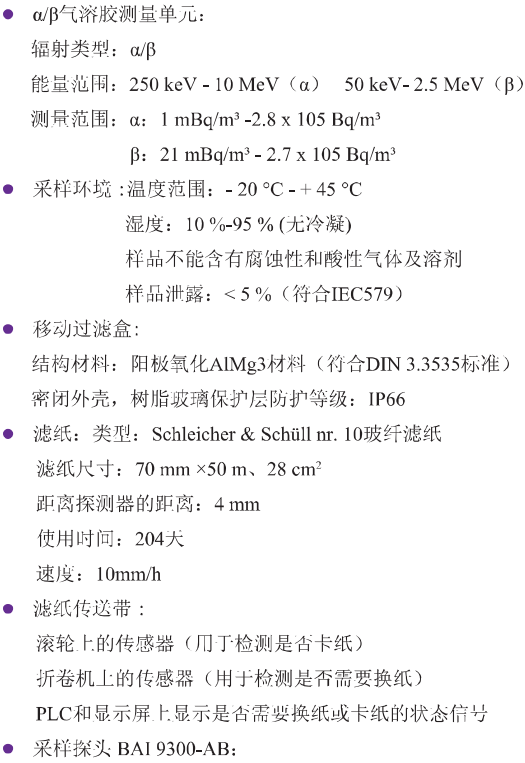 德國伯托 BAI9850-6放射性氣溶膠連續監測系統 技術參數: