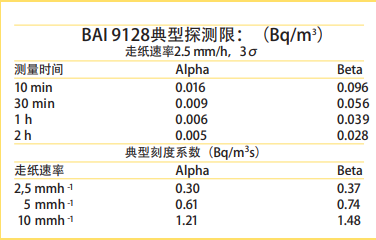 探測(cè)限根據(jù)DIN25482相關(guān)規(guī)定,測(cè)量1小時(shí),α<0.004Bq/m3,β<0.04Bq/m3