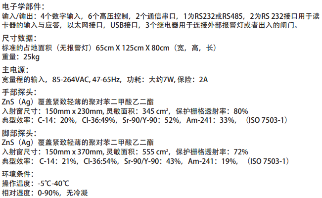 德國伯托 個人手腳衣物污染監測儀LB147 技術參數: