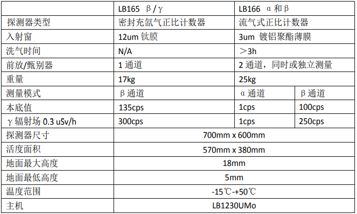 德國伯托 大面積地面污染測量儀LB165/166 技術參數(shù):