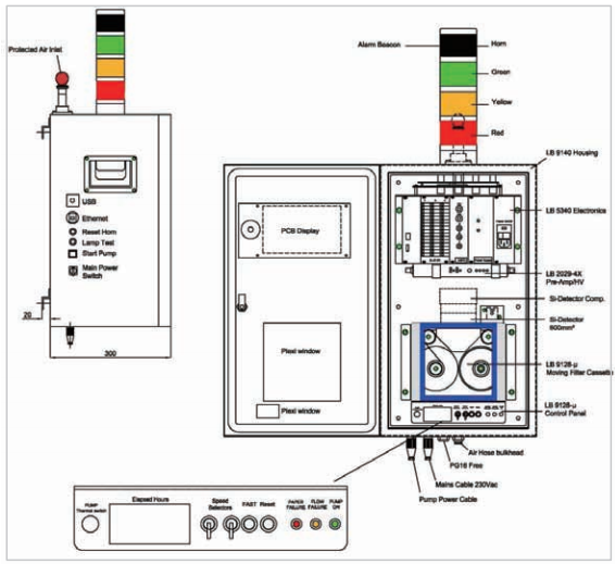 LB9140用于連續(xù)測(cè)量空氣αβ放射性氣溶膠,主要組成部分為: