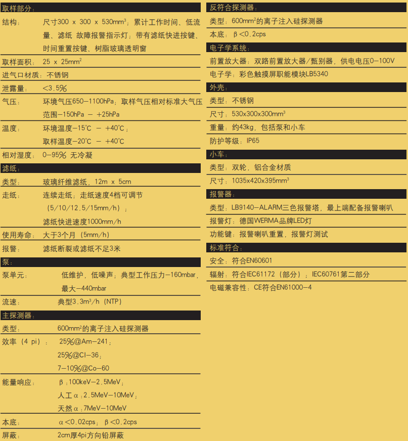 德國(guó)伯托 移動(dòng)式αβ氣溶膠連續(xù)監(jiān)測(cè)儀LB9140 技術(shù)參數(shù):
