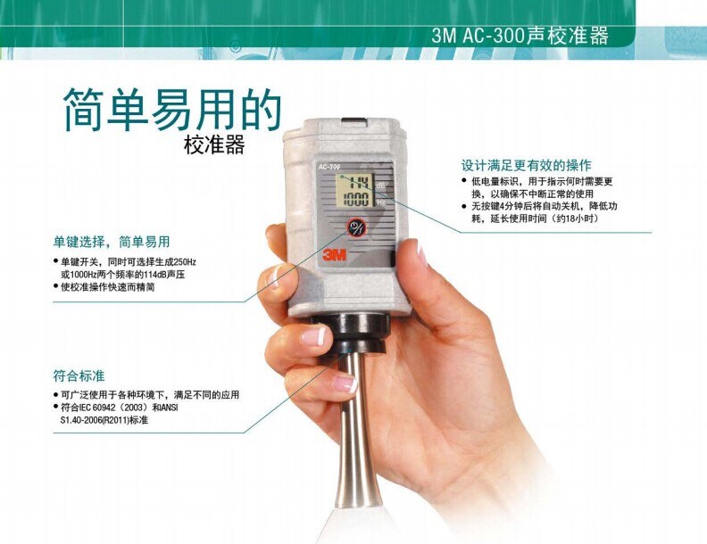 美國3M AC300聲校準(zhǔn)器 產(chǎn)品特點: