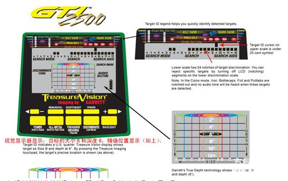 TreasureVision表示您的GTI2500顯示屏上的成像是由蓋瑞特公司的專*技術。