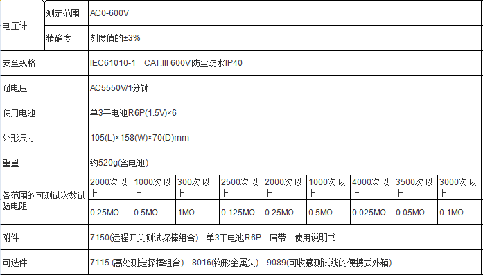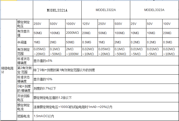 日本共立KYORITSU 3321A絕緣電阻測試儀 相關參數: