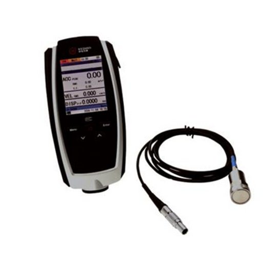KV-3000型便攜式測振儀采用ICP加速度傳感器,將振動信號轉換成電信號。通過對輸入信號的處理分析,獲得振動測量的加速度峰值、真有效值和峰值系數,速度有效值,位移峰-峰值,并可以打印出相應的測量值和頻譜列表。