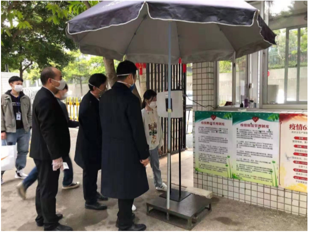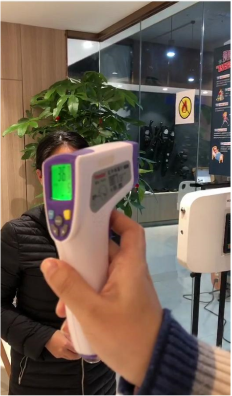 手持體溫槍復(fù)檢;顯示溫度為 36.7 攝氏度