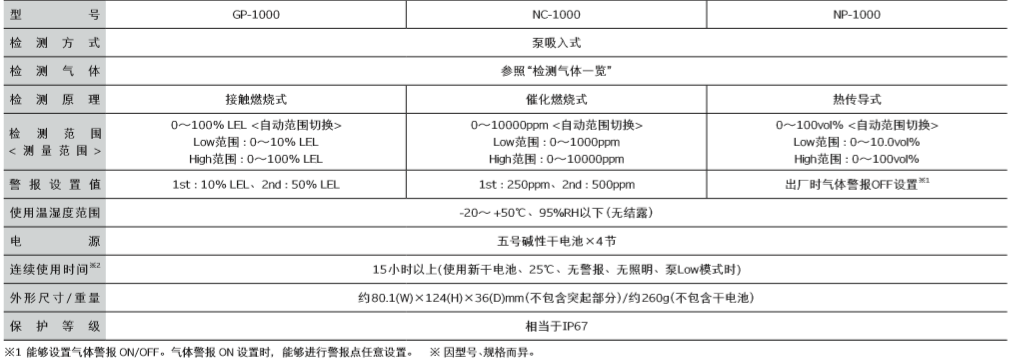 日本RIKEN(理研) NC-1000高靈敏度可燃氣體檢測儀產品技術參數: