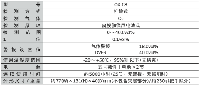 日本RIKEN(理研) OX-08便攜式氧氣檢測儀產品技術參數: