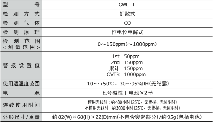 日本RIKEN(理研) GWL-Ⅰ個(gè)人氣體檢測儀產(chǎn)品技術(shù)參數(shù):
