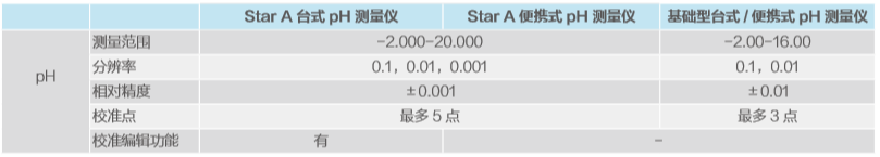 美國ORION奧立龍 Star A 系列臺式及便攜式 pH 測量儀產品技術參數: