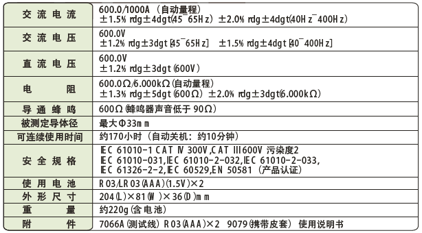 日本共立 KEW 2007R 數(shù)字式鉗形表 相關(guān)參數(shù):