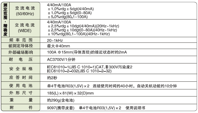 日本共立 MODEL2432高靈敏型泄漏電流鉗形表 相關(guān)參數(shù):